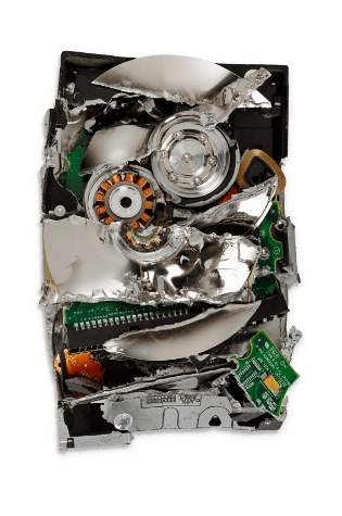 Shreds your entire hard drive into small pieces using industrial grade destruction equipment. The hard disk shredding process completely destroys the drive platters, mechanisms, and the electronic components rendering the data unrecoverable.